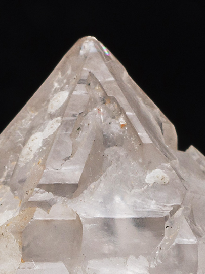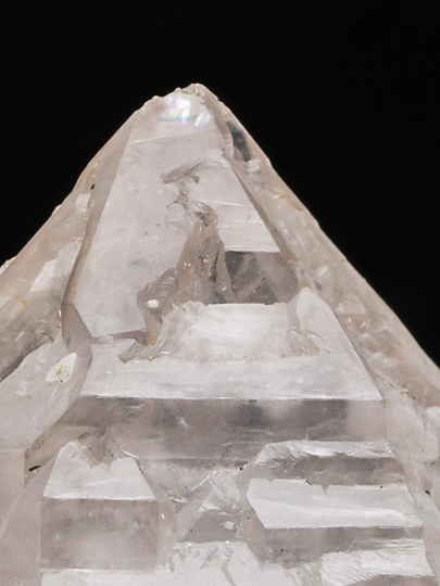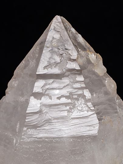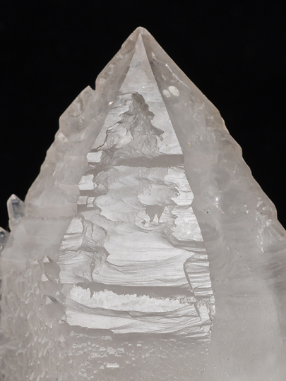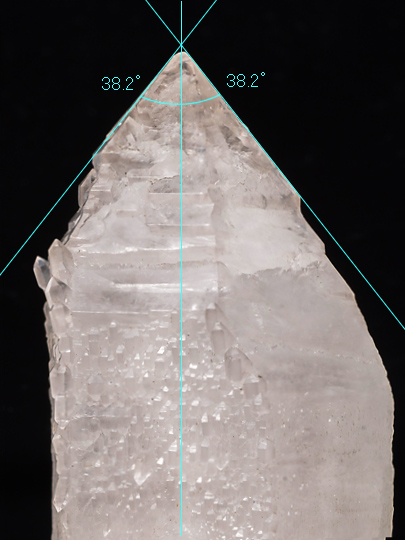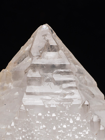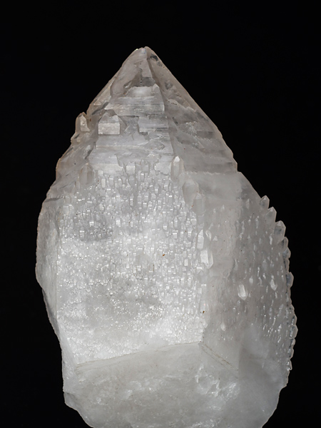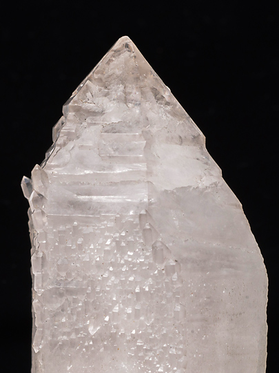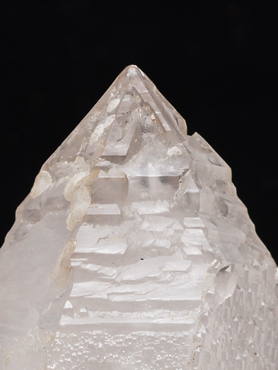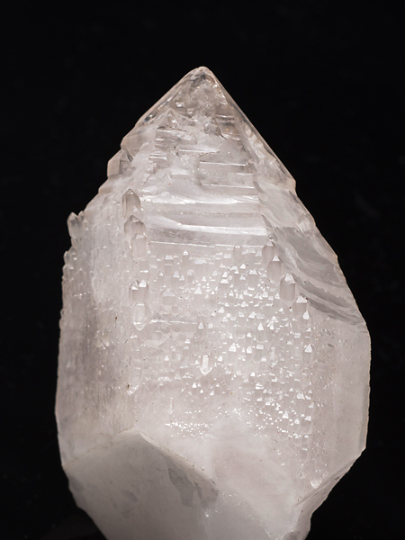 一つ。錘面(菱面体面)が一様でなく、傾斜面と比較的短い柱面との繰り返しによって形成されている。また稜線の領域は錘面の内側よりも発達が先行したらしく、骸晶的な、いわゆるエレスチャルの形状を持つ。そのため頭部から柱軸方向に観ると、稜線の出っ張りが6条の星形に見える。