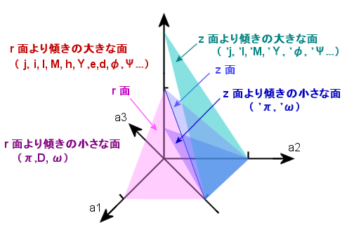 これらを改めて主要 3面に対する関係(出現位置や角度の緩急)で分類してみると、以下のようになる。