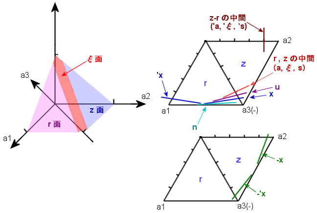 ※ 'aは柱面を回転させた配置、'ξは z面を回転させた配置、 'sは