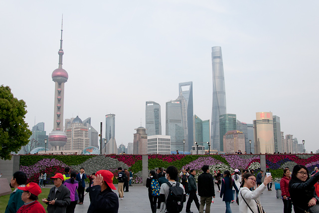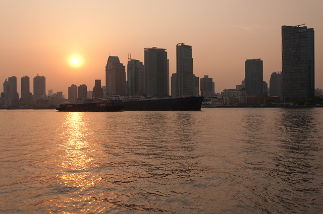 外灘。TV塔の足下を流れる川越しに昔からの市街区を眺めて。