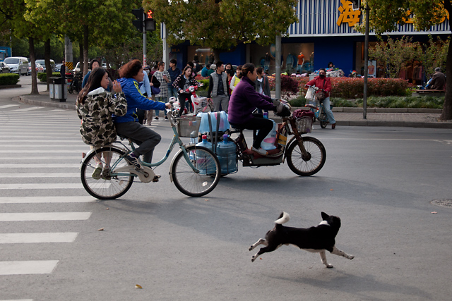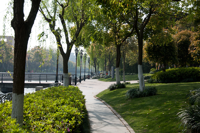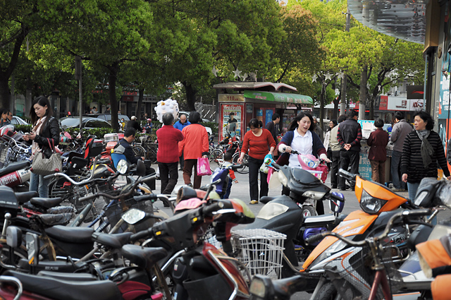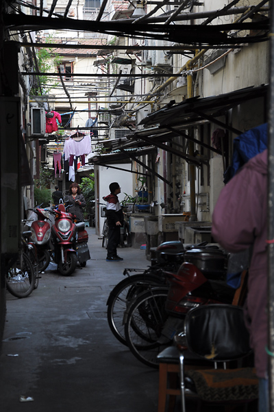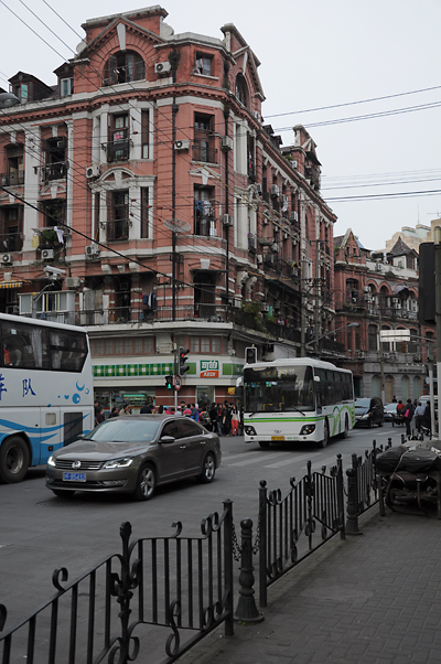 旧市街区。繁華街の世紀大通を一路北へ上がったあたり。