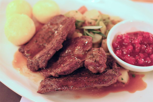シカ肉。ベリーのジャムをつけて食べるのが定番