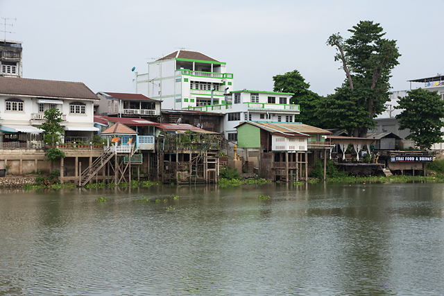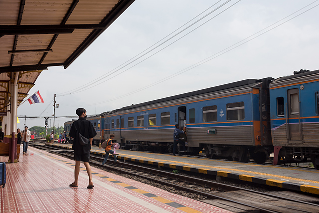 アユタヤはバンコクの北約80kmほどのところにある古都で、世界遺産の観光名所です。随分後年になってから訪れる機会がありました。やっぱり汗を流し、目を細めて、うだりながら歩きました。多分タクシーを一日ハイヤーして観光するのが楽だろうと思いますが、タイ国鉄で行きました。往路はクルンテープアヒワット駅から快速で。冷房車両の切符を求めると、外国人料金。割高ですが、そんな無茶でもありません。タイ人料金はリーズナブルで、冷房なしの車両だとバンコク市内を移動するBTSやMRTと変わらないレベル。逆に言えば、市内鉄道料金は地方のタイ人にはびっくりするほど高いのじゃないかと思います。