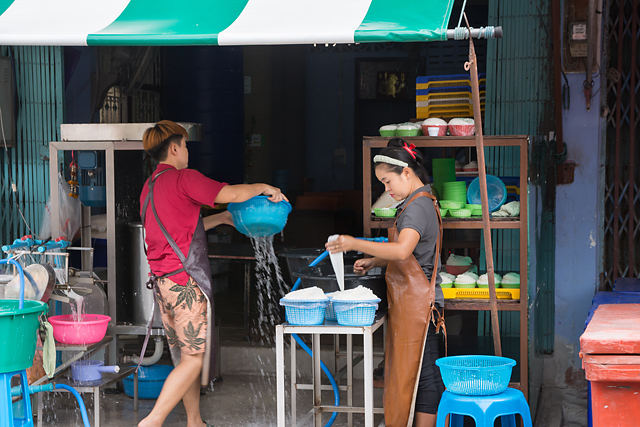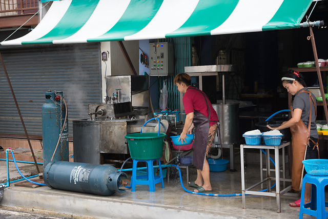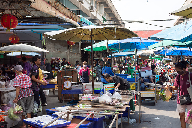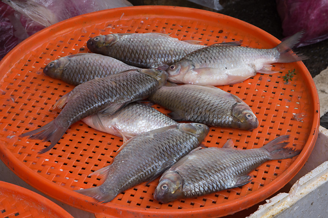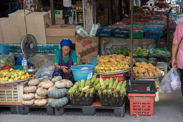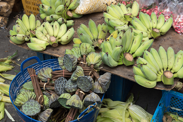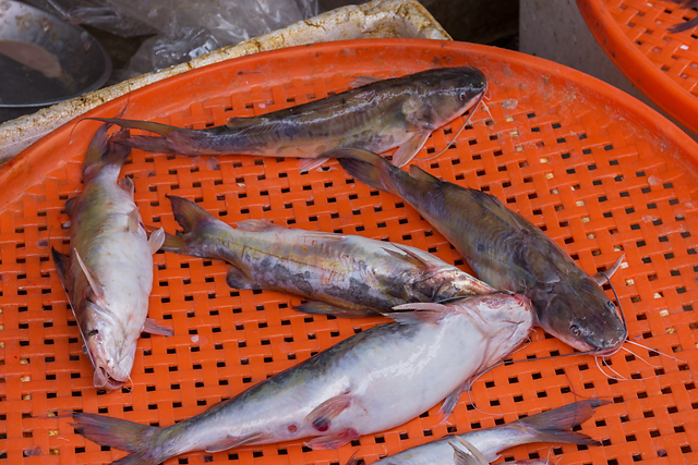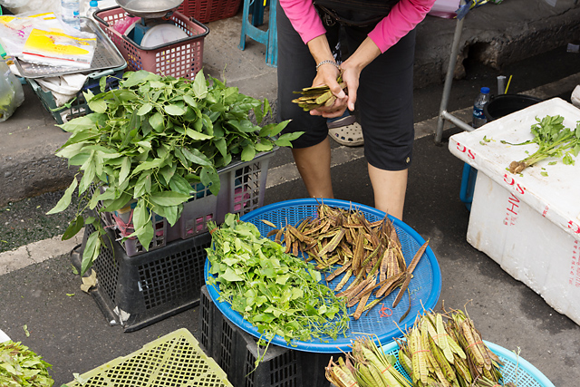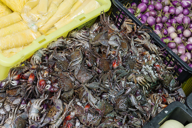 お客さんを見てると、なんでもそのままビニール袋に突っ込んで、提げて帰る様子。半世紀前の日本の市場だと、新聞紙に包んで、手提げバスケットに入れてくれたものです。