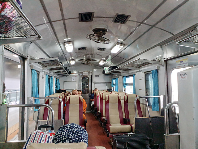 冷房車両。1時間ほどの旅ですが、エアコンがあるとほっとします。