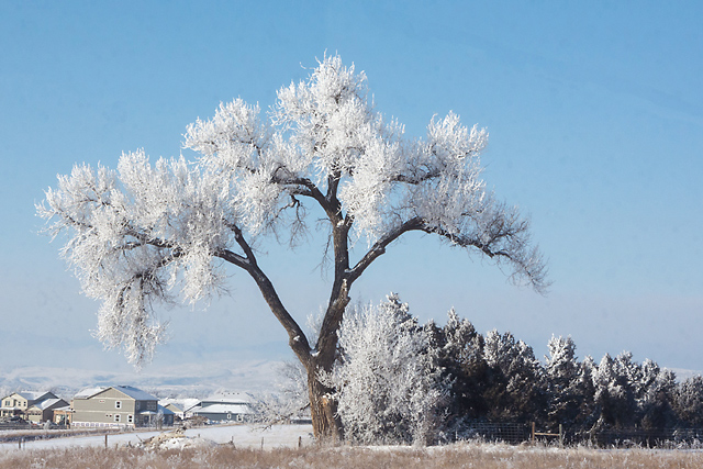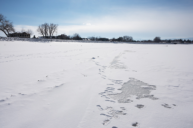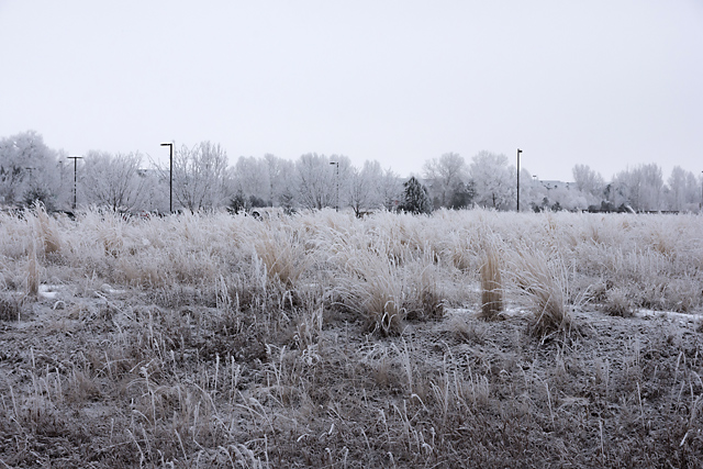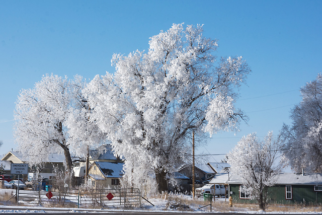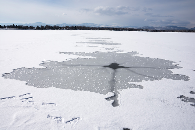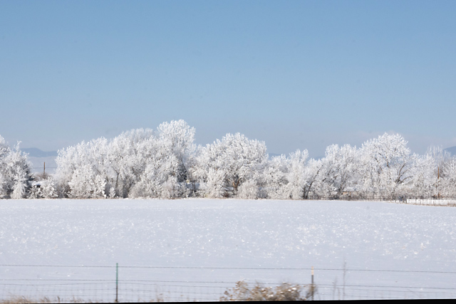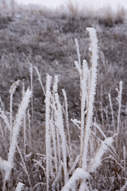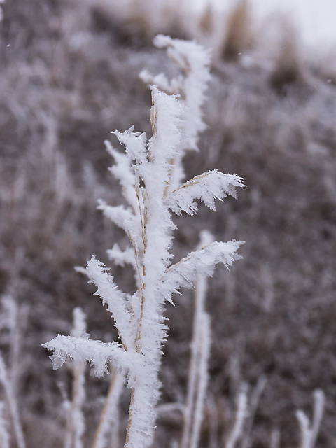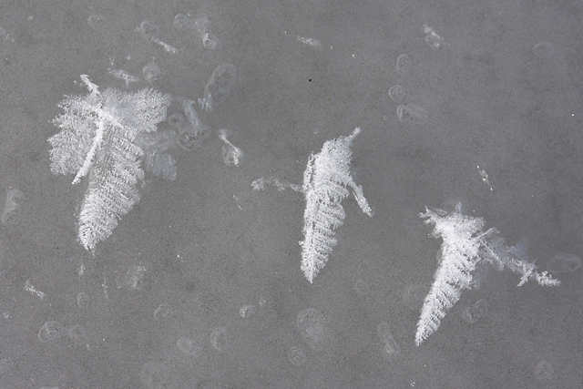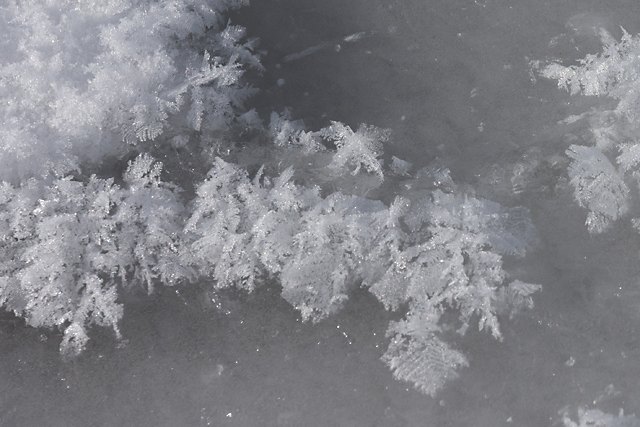 氷の上の雪。羽毛状〜樹枝状に結晶している。