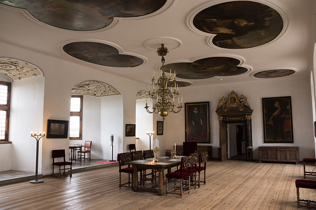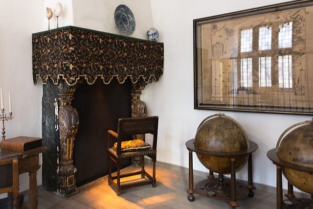 城内は見学が出来る。ただし内部の調度品はスウェーデン軍の略奪後に調えられたものか、当時を再現するために作られた復元品。画像は図書閲覧室。天球儀が置かれている。フレゼリク 2世の宮廷で活躍した科学者の一人に貴族出身のチコ・ブラーエがあった。彼はエーレスンド海峡のヴェン島(現スウェーデン領)の長官を務め、島にウラニボリ天文台を建設した。