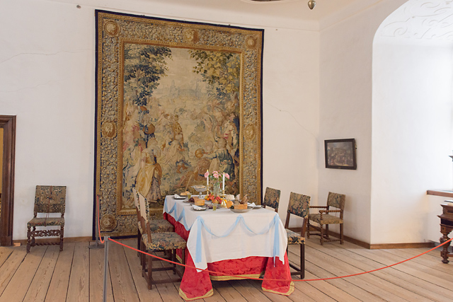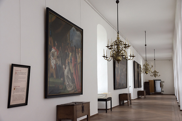 王妃の通廊。王妃の応接室と舞踏室、城内礼拝堂を結んだ。往時は床が濃い藍色と明るい黄土色の模様で塗られ、壁は赤いウール地で覆われていたという。