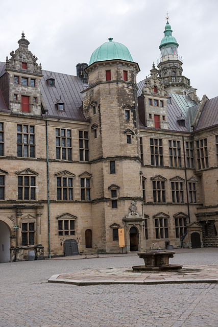中庭。フレゼリク 2世の時代には、暗藍色の大理石の水盤に囲まれた高さ 6.5mの円柱が建っていた。これは噴水で、円柱の最上部でトライデント(三又槍)を手にした海神ネプチューンが回っていた。人魚や戦士たちの像が円柱を取り巻き、それぞれ水を吹いたという。